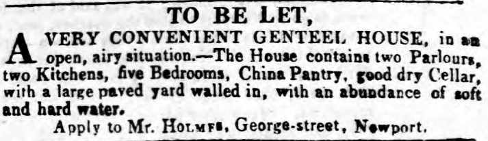 Hence it is that in such places fever always lurks, and every year adds to the number of its victims. Increasing as Newport is in the number of houses and density of population, 'twould be well were alarm to be taken from the unenviable notoriety Liverpool has obtained for the state of its inhabitants. And did we not advert to an evil of such vital consequences to its welfare, we should not shew a true interest in behalf of a town which from every fact of its history and locality, we do not hesitate to write will become one of the first of commercial importance in the kingdom.