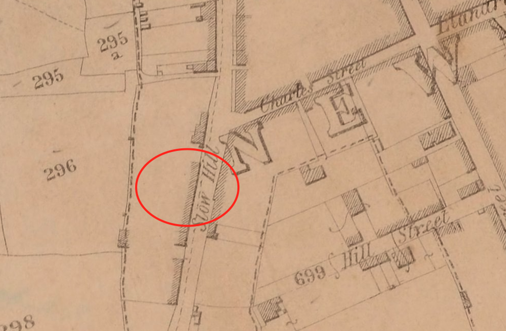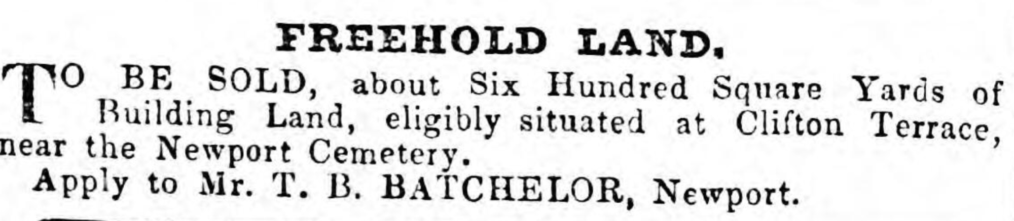 Land further along from the row of houses was for sale in 1849 May 1849. The row of houses back then was called Clifton Terrace.