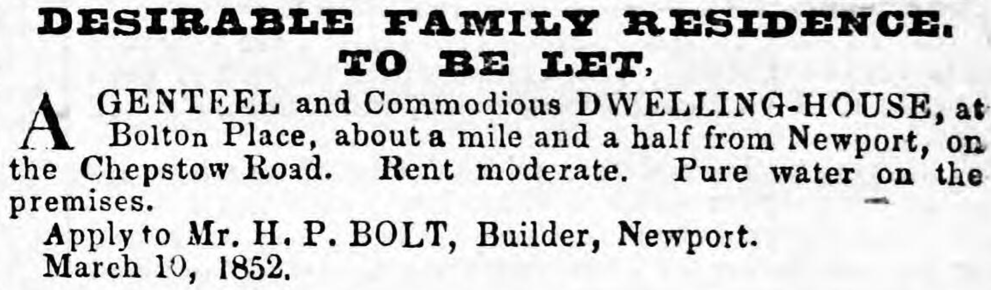 Yet to my personal knowledge one Newport gentleman has sent his family away, whilst others are considering a similar step, owing to the fear of an outbreak of fever. The barometer is high, and the likelihood of rain very remote, and something must be done.