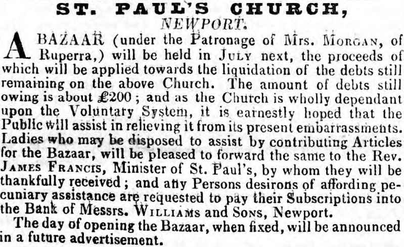 — Monmouthshire Merlin, 29th July, 1843