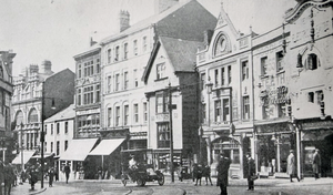 Considerable attention was paid to house embellishment and displays, more or less extensive, of bunting were to be seen in most parts of the town. At the station entrance hung a string of handsome flags, the centre one bearing the inscription "Welcome to our Townsman's bride" while banners were shown from the King's Head Hotel and other buildings in the vicinity. But it was between the New Entrance and Bryn Glas that the decorators had bestowed their most successful efforts. An arch of evergreens and flowers was erected near the Castle Brewery and the front of the railway bridge lower down the road was completely hidden by a wealth of foliage and flowers, the design being surmounted by a scroll on which were the words "Long life and happiness to the Squire of Bryn Glas and his bride."