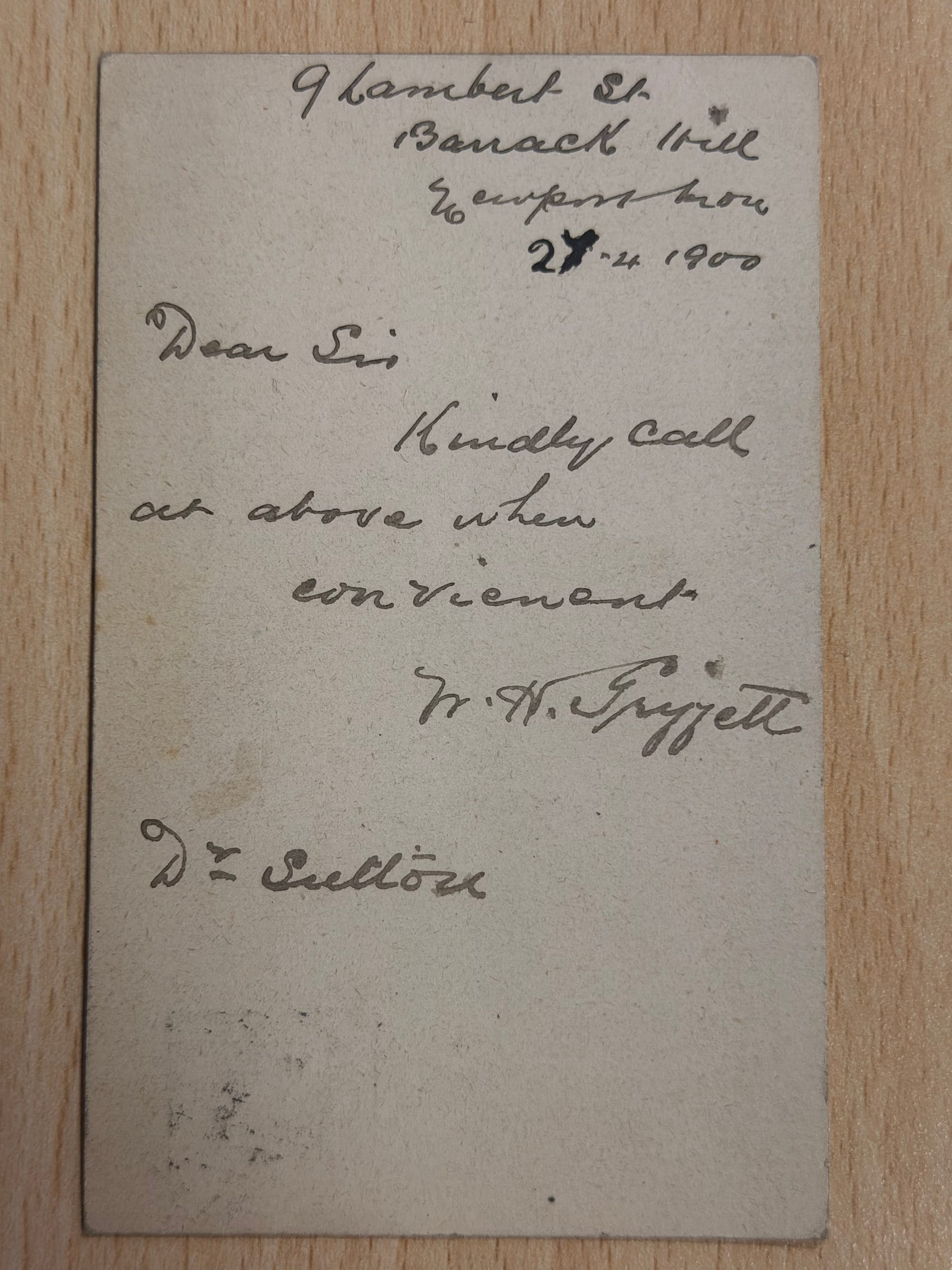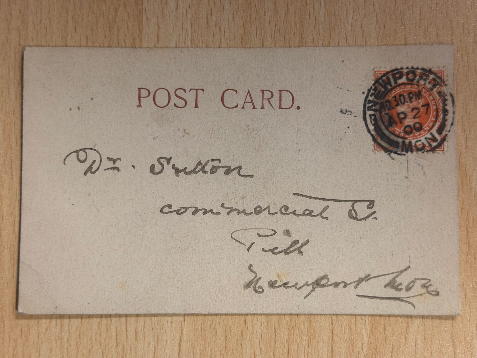 Whilst sorting through an old stamp collection I can across this post card from 27th April, 1900. It was sent from a Mr William Griffiths of 9 Lambert Street to Dr Sutton at 'Commercial Street, Pill'.
