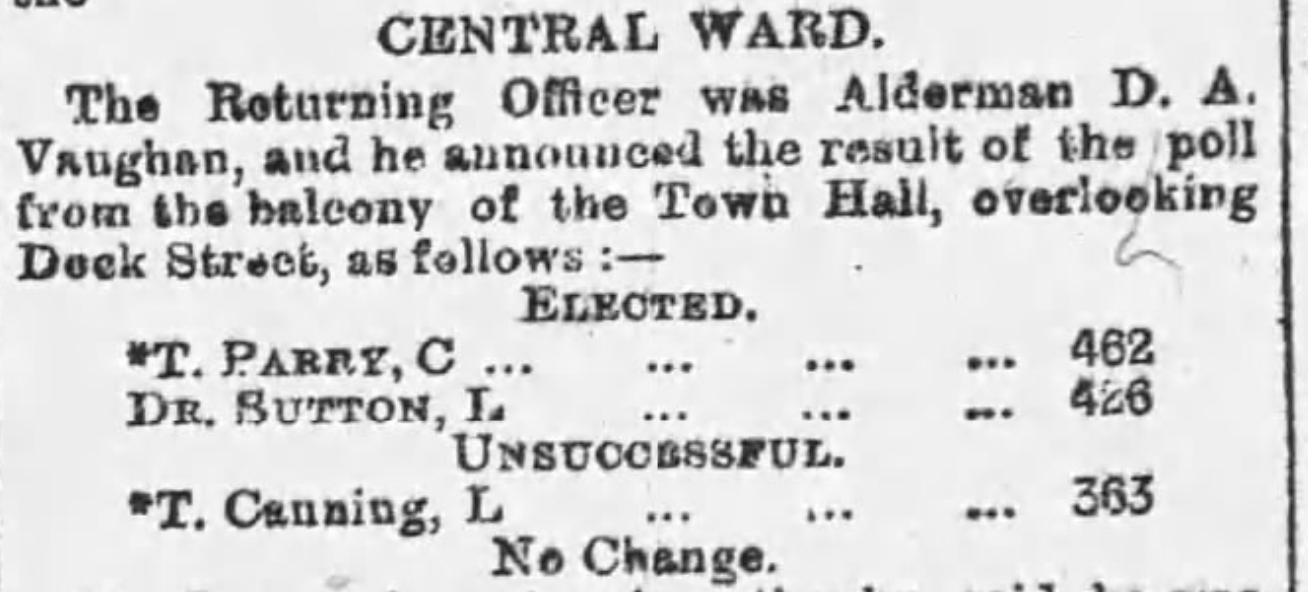 Dr Sutton, a liberal, was elected in 1900 as a councillor in the Central Ward.