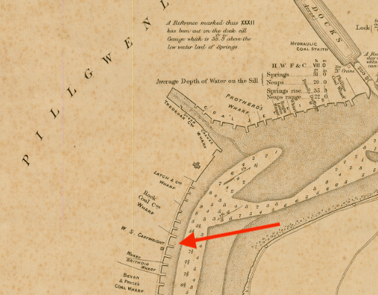 The place I have selected for the out-fall, is at the extremity of the borough, near the Waterloo Coal Wharf it will enter the Usk at that point, at a level (reckoning to the sill) about ten feet below high water of spring tides which rise, at Newport, about thirty-eight feet: therefore' during the last six or seven feet rise of spring tides, the outfall will be closed.